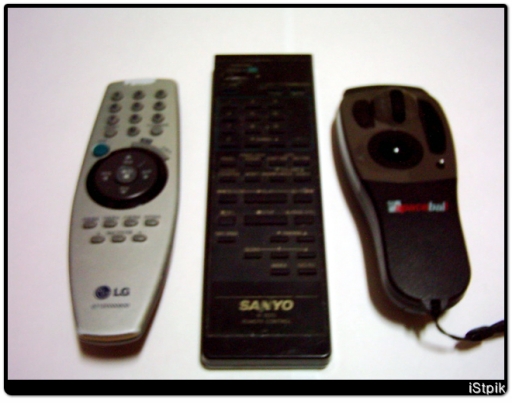 현재 본인 방에 있는 다른 리모콘들과의 비교입니다. 좌측은 LG TV(모델명 RN-20CB72), 가운데에는 구형 산요 VCR, 오른쪽이 SpaceBall입니다. 크기는 보통 리모콘과 비슷하다고 볼 수 있습니다.