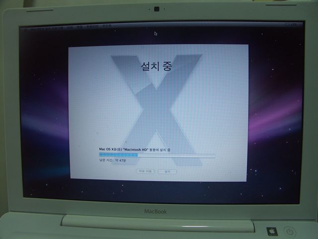 맥북 OSX 재설치… 2008년 6월 5일 by iStpik 하드디스크 정리할겸 싹 밀어버렸습니다. 타이거는 아이북쓸때 여러번 지웠다 깔았다 해봤지만… 레퍼드는 여지껏 살때 깔려있던것을 쓰다보니까 설치화면은 처음봅니다. 타이거랑 너무 많이 틀리군요.