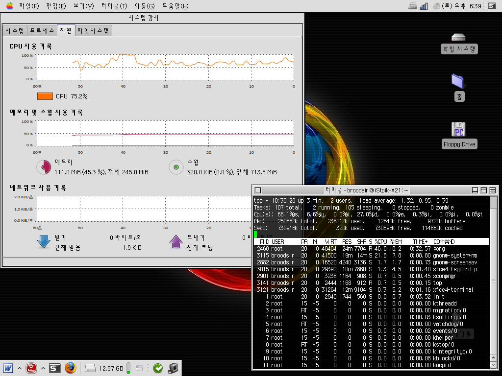 그래서… xfce기반의 주분투(9.06)으로 옮겼습니다.