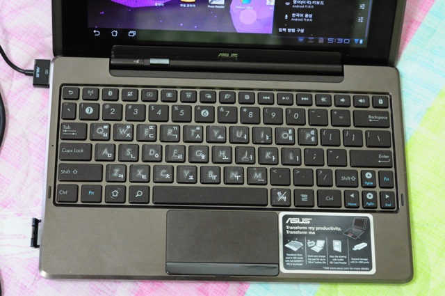 배열은 보통의 랩탑과 별 다를 바 없습니다만, 일반적인 F1, F2등의 펑션키가 빠지고 TF101제어용 펑션키로 바뀌었습니다.