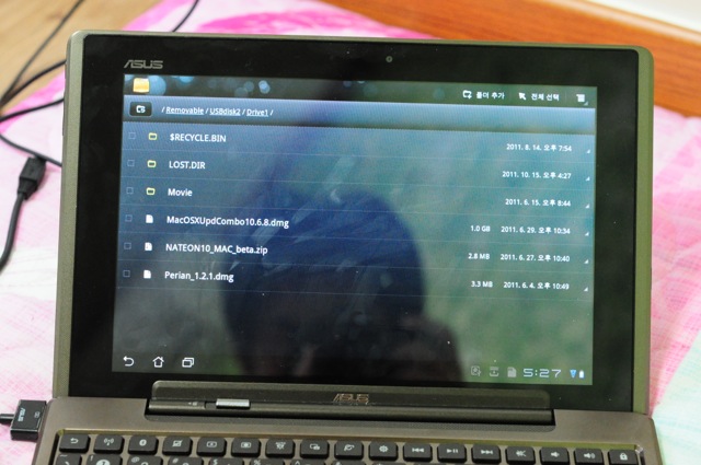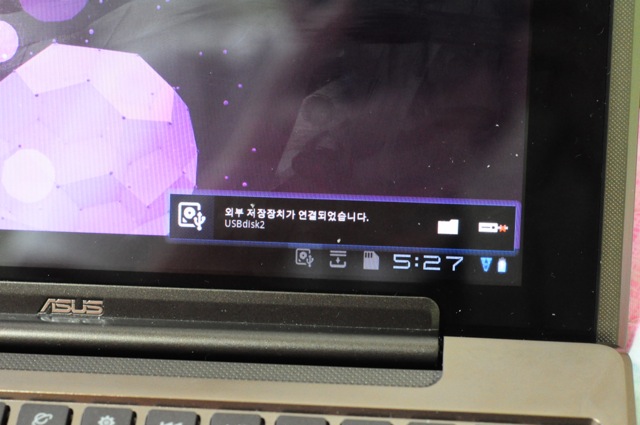 TF101본체에는 USB호스트 단자가 없지만, 키보드 독에는 왼쪽과 오른쪽해서 합 두개가 있습니다.