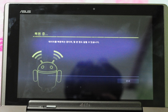 기존에 차차와 갤럭시탭에서 쓰던 어플들을 자동으로 설치해 주고 있는 모습입니다.