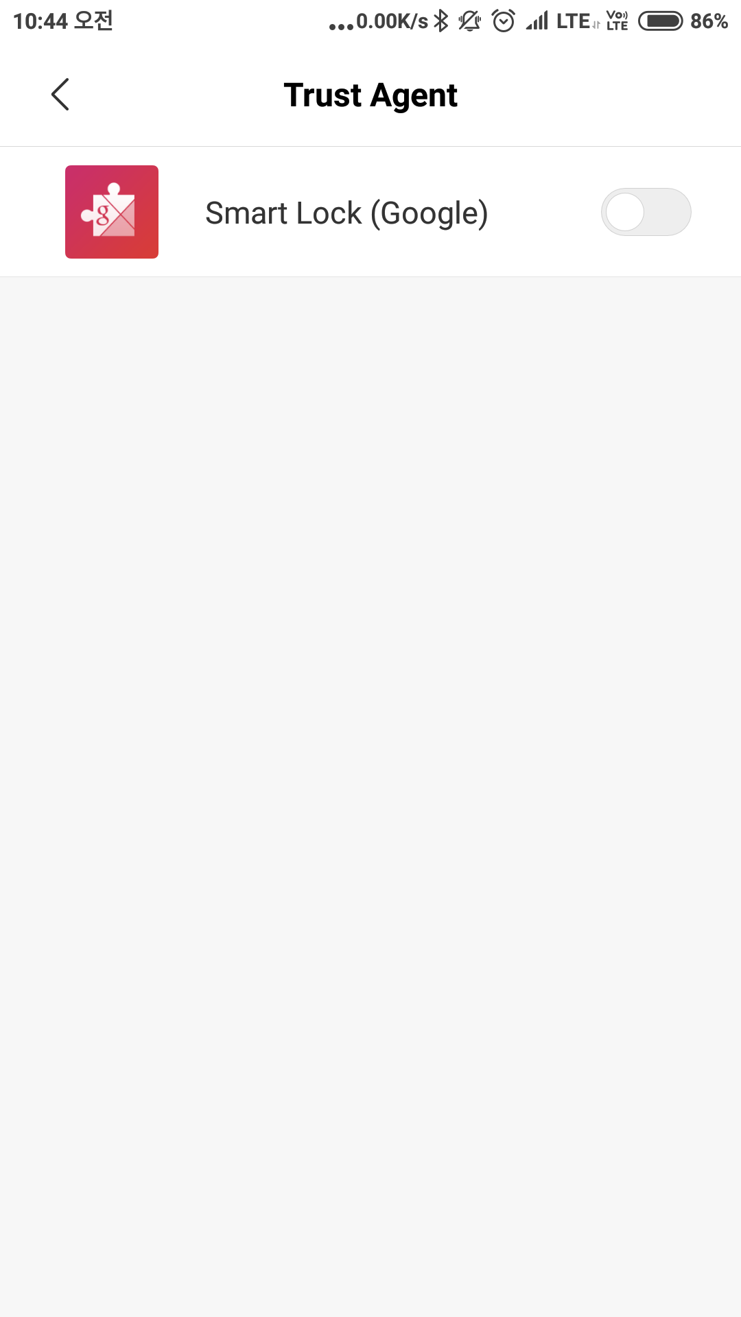 설정 -> (시스템 & 기기)추가 설정 -> 개인 정보 보호 -> Trust Agent 에서 Smart Lock (Google)을 끄시면 됩니다.