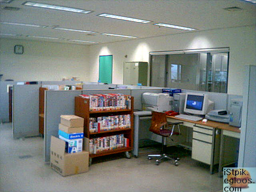 사무실에서는 가끔 새로 들어오는 서적이나, 비디오, DVD등의 표지를 스캔해주고 등록을 하는 일을 합니다. 그런것 빼고는 출근부 적을때나 들어가는곳이지요. 보통때는 준비실에서 대기 혹은 서고에서 바코드 스캔이나…