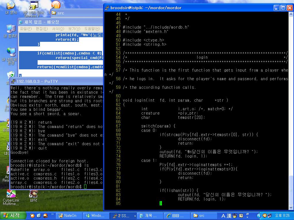 아이구… 오랫만에 C언어고 뭐고 둘러보려니 머리가 아프군요… 무한대전 1.3을 써보려고 했더니, gcc 정책이 바뀌었는지 컴파일이 안되고…(프로그래밍을 배우다 말았더니 어떻게 바꿔야할지 막막해서…) 그래서 mordor 6.66으로 열심히 공부겸 노가다 중입니다 ㅡㅡ;