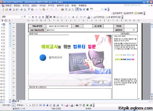 eTL센터에서 사범대학생에게 컴퓨터의 기초를 가르치는 컨텐츠를 개발 어쩌구저쩌구… 하여, 현재 제가 맡고 있는 부분은 윈도우XP하고 멀티미디어입니다. 어려웠던 시절은 다 지나고, 이제 수정만 하면되니… 나머지는 업체에서 해주는일이고… 하아… 이것도 의외로 힘든일이군요… 갑자기 자아의 정체가… 얼른하고 제출하고 잠이나 자야겠습니다.