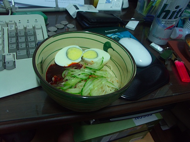 흐흠… 추석이 지나고 다시 자취방으로 돌아와 있습니다. 지난 연휴동안 집에서 차려준밥 먹었다고 그간 몸에벤 자취능력이 상실되는것은 아니지만… ㅡㅡ; 밥하기가 귀찮군요. 뭐 그래도 잘 해먹고 있습니다. 떨어진 김치도 집에가서 가져왔겠다 한동안은 반찬 걱정할일은 없을듯 그나저나… 강화가기전에 늘어진 방 청소하기는 참 귀찮군요. 밥보다 이게 더 문제일듯… 밥하기 귀찮을때에는 비빔면이 최고! ㅡㅡ;