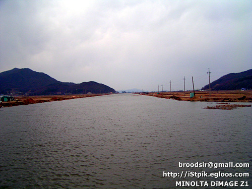 몇개의 수로가 합류하면 제법 폭도 넓어집니다. 아래쪽 사진은 선두리쪽의 낚시터입니다. 날씨도 춥고 어둡고 해서인지 낚시하는사람들은 별로 없더군요.